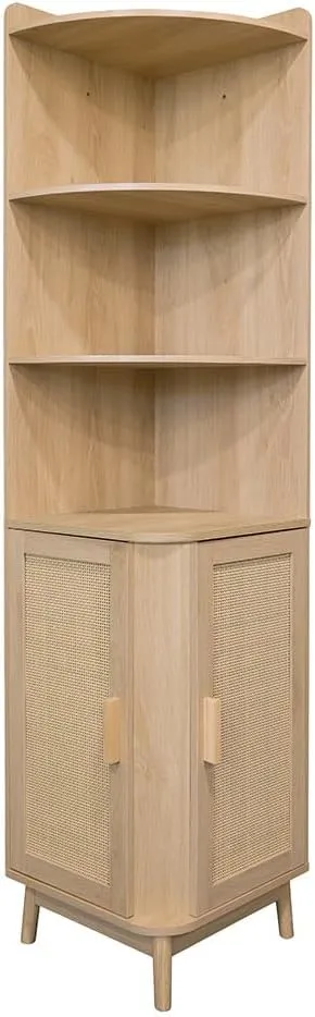 Armoire d'Angle en Bois et Cannage - 40x40x172 cm - Rangement Bohème pour Salon et Chambre