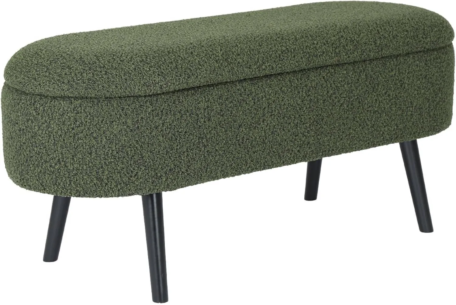 Banc Coffre en Bouclette Texturée Kaki avec Pieds en Bois Noir