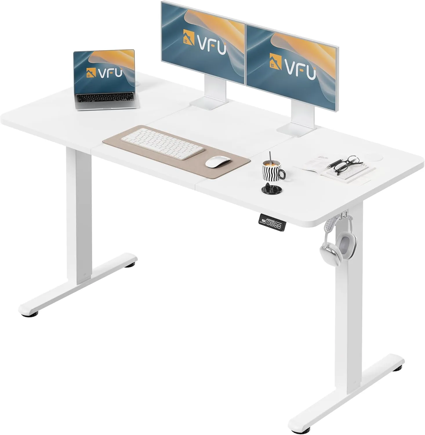 Bureau Électrique Réglable 140x60 cm avec Mémoire et Anti-Collision, Blanc