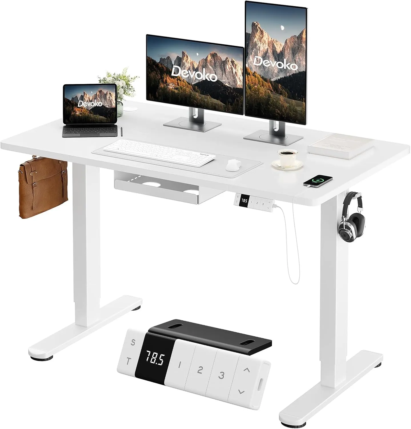 Bureau réglable en hauteur: La hauteur du bureau peut être ajustée de 72 cm à 118 cm en appuyant sur un bouton. Commodités intégrées: Équipé d'un port Type-C, ce bureau permet de recharger facilement vos appareils. Il comprend également une gestion des câbles sous le bureau et deux crochets pour garder l'espace ordonné. Mémorisation de positions: Le panneau de commande permet d'enregistrer 3 hauteurs préférées, idéales pour différentes postures comme debout ou assis. Stabilité et sécurité: La structure en forme de T supporte jusqu'à 70 kg. Le moteur est testé pour garantir la sécurité, avec technologie anti-collision et protection contre la surchauffe. Utilisation variée: Favorise une alternance entre postures debout et assise, aidant ainsi à maintenir l'engagement et le confort pour diverses activités comme le travail, l'étude ou la lecture.