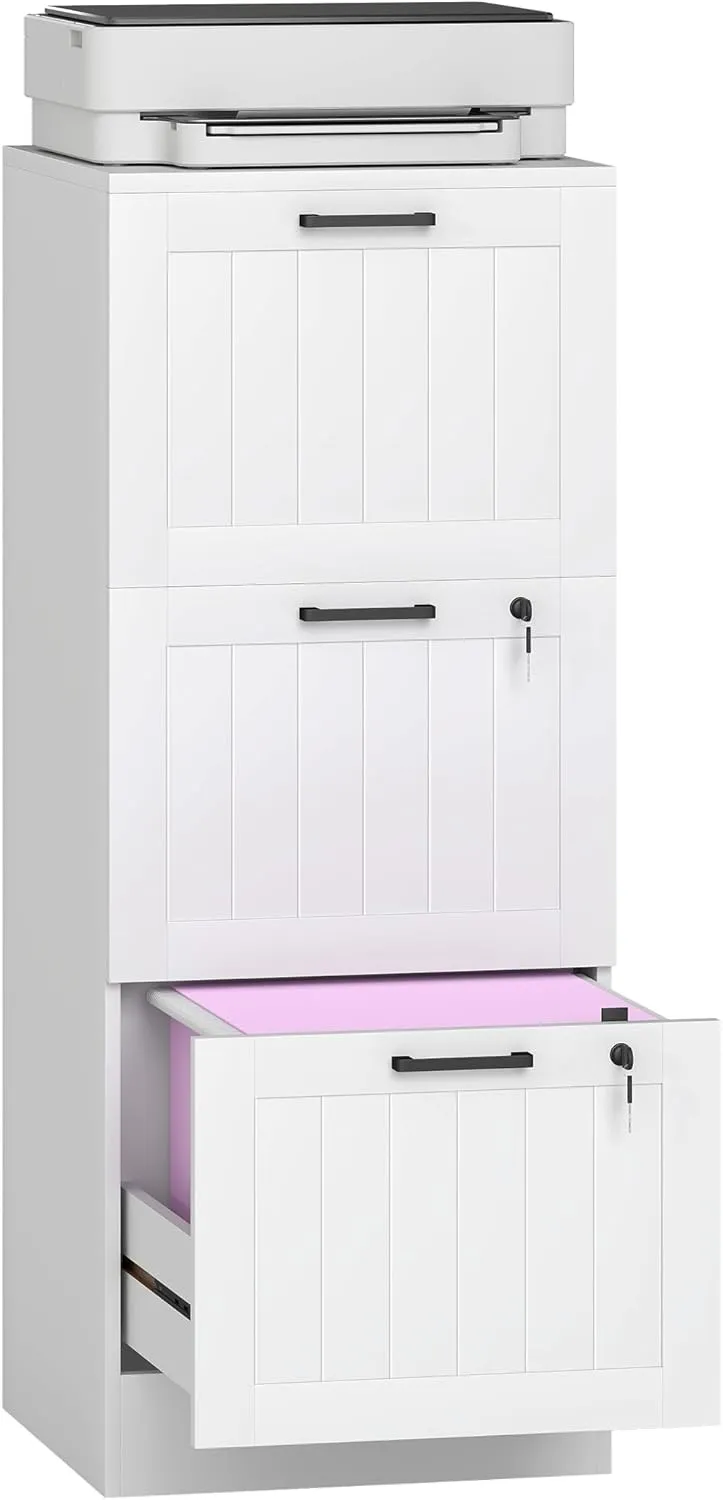 STOCKAGE SPACIEUX ET DESIGN COMPACT : Avec des dimensions de 40L x 40l cm, ce caisson de bureau moderne propose trois tiroirs pour ranger vos documents tout en occupant peu d'espace au sol, convenant aux bureaux à domicile ou aux salles d'étude. ORGANISATION ADAPTÉE : Rangez vos dossiers de taille A4 et lettre facilement grâce aux rails de suspension ajustables dans chaque tiroir. Configurez votre espace selon vos besoins pour maintenir l'ordre dans vos documents. SÉCURITÉ DES DOCUMENTS : Protégez vos documents avec trois tiroirs équipés de systèmes de verrouillage séparés. Le dispositif anti-basculement permet de fixer le meuble au mur pour plus de sécurité. DESIGN VERSATILE : Ce caisson de rangement s'intègre à toute décoration et peut également servir de support pour imprimante, ajoutant fonctionnalité à votre espace. INFORMATIONS SUR LE PRODUIT : Dimensions totales : 40l x 40P x 101H cm. Charge max. recommandée : 60 kg (total), 15 kg (dessus/tiroir). Montage requis.
