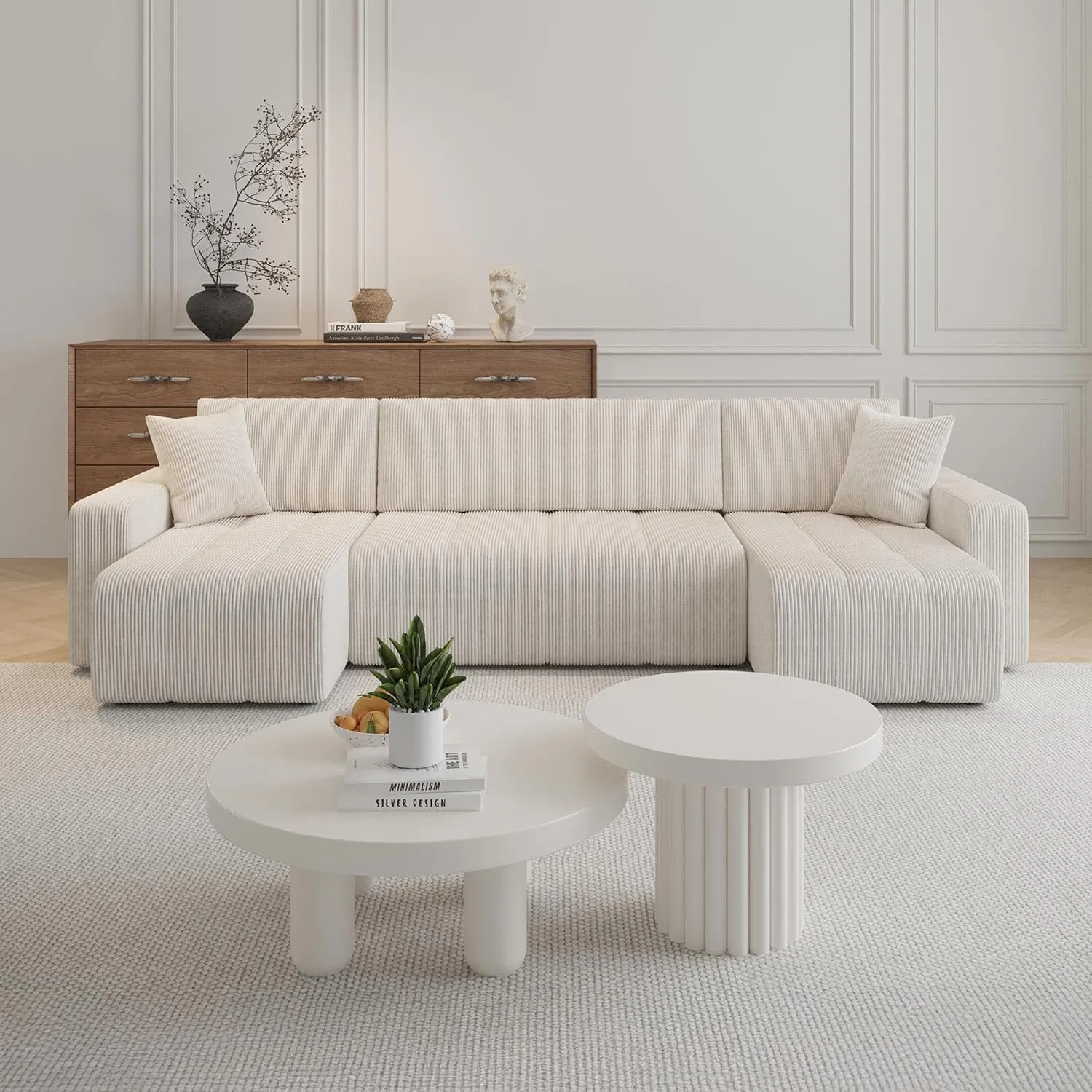 Canapé d'Angle Convertible en Velours Beige avec Coffre - Collection Alicia