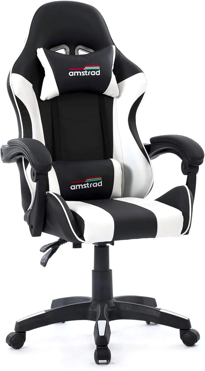 Chaise de Gamer Amstrad AMS-800 en Noir et Blanc avec Support Lombaire et Appuie-tête
