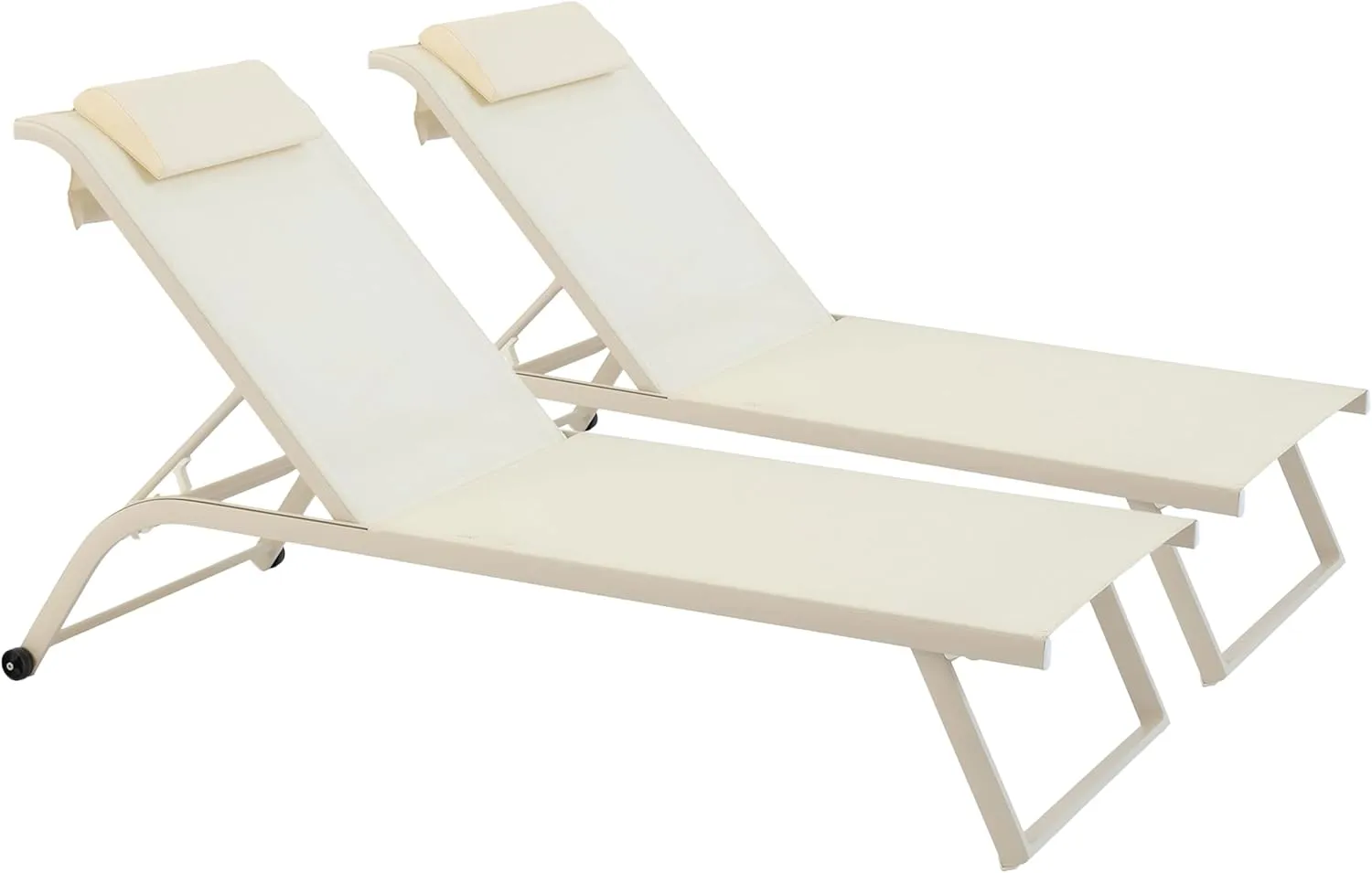 Chaise Longue de Jardin Inclinable avec Roues - Lot de 2, Couleur Ivoire