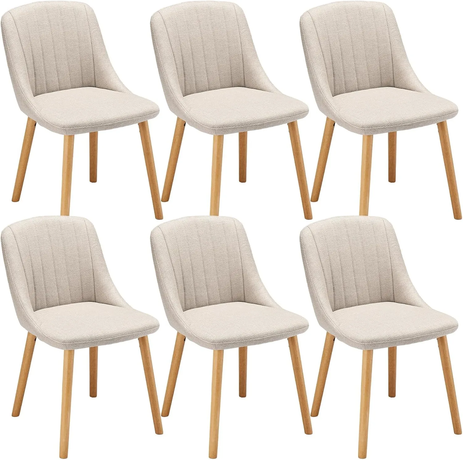 Ensemble de 6 chaises de salle à manger beiges avec pieds en bois, dossier en polyester