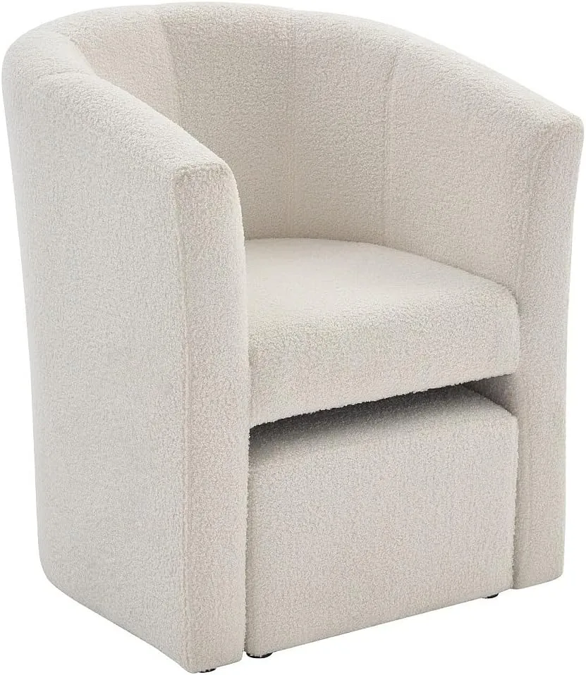 Fauteuil Cabriolet et Pouf en Tissu Bouclette Blanc - Jovana