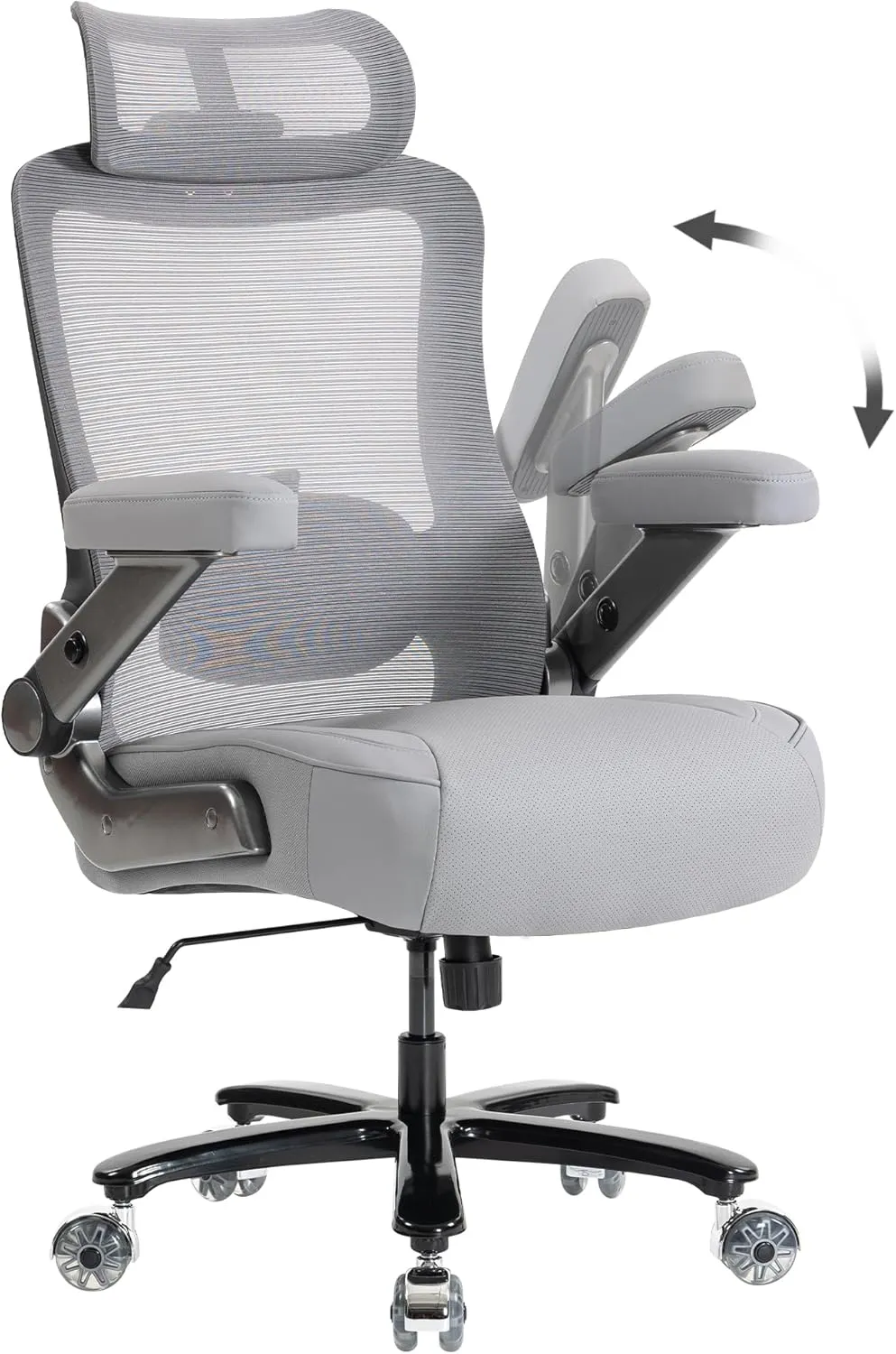 Fauteuil de Bureau Ergonomique Gris avec Accoudoirs Ajustables et Dossier en Maille, Charge 350 kg