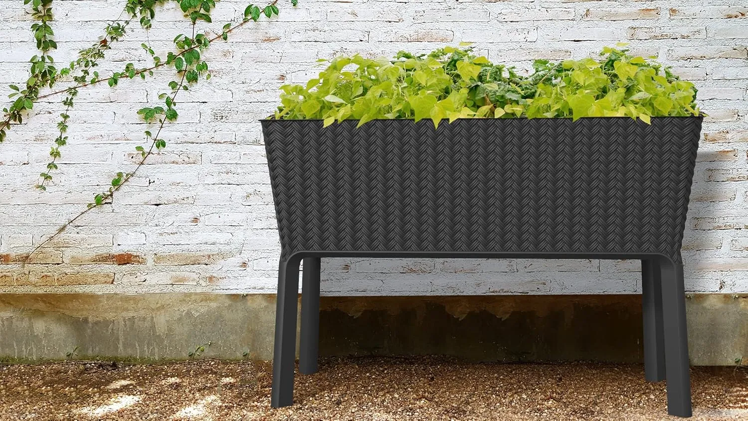 KETER - Bac à fleurs Splendor Graphite 114 x 49,3 x 75,7 cm pour terrasse