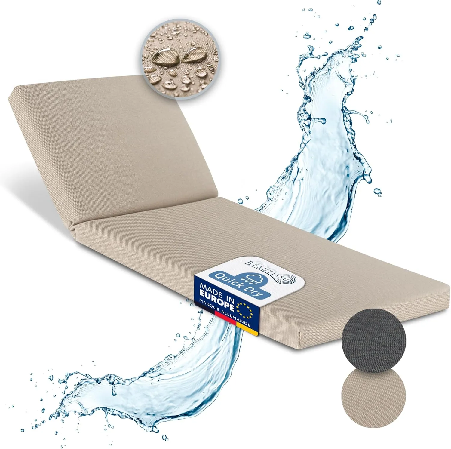 Coussin résistant aux intempéries – Le coussin extérieur imperméable peut être exposé à la pluie. Grâce au polyester Quick Dry et au revêtement en PU, il ne se remplit pas d'eau. L'eau perle à la surface ou peut être essuyée avec un chiffon. Coussin résistant à la lumière UV – Avec une solidité à la lumière UV de 6, ce matelas protège contre la décoloration causée par la lumière du soleil, adapté à une utilisation extérieure. Laissez-le sur vos meubles de jardin tout l'été. Coussin avec confort et durabilité – Le matelas de jardin avec mousse PU et ouate offre un confort et une durabilité. Il mesure environ 190x60x5,5 cm et est adapté pour le jardin, le balcon ou la terrasse. Housse amovible – La housse du coussin 190x60 cm est lavable en machine à 30°C ou peut être nettoyée avec un chiffon. Les coussins sont faciles à entretenir. Combinaison possible – En plus des coussins imperméables, vous pouvez ajouter des coussins pour chaises à dossier bas et haut. Disponibles en anthracite et beige, ces coussins allient fonctionnalité et design moderne.