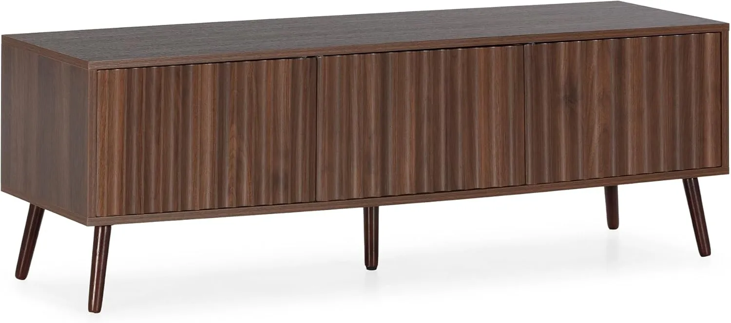 Meuble TV Moderne 3 Portes Effet Noyer, Dimensions: 130 x 40 x 45 cm