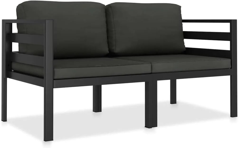 Salon de jardin 2 pièces en aluminium anthracite avec coussins - Modulable et résistant aux intempéries