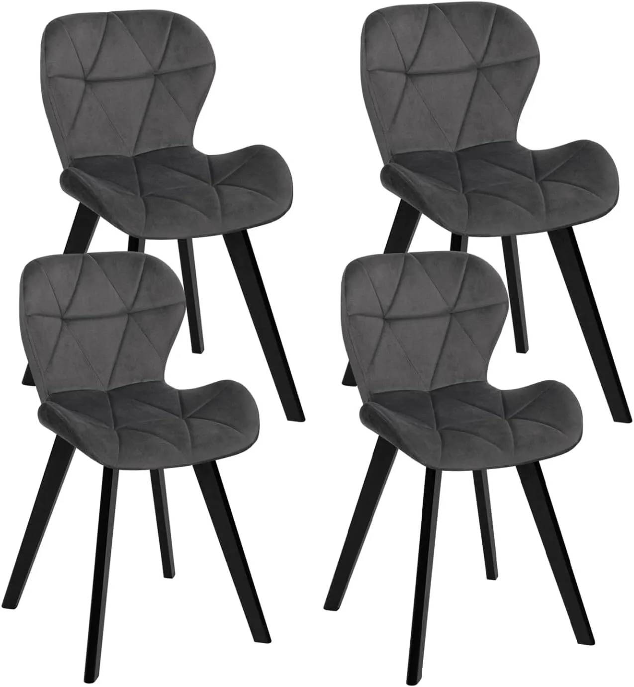 Set de 4 Chaises en Velours Gris Foncé avec Pieds Noirs - IDMarket