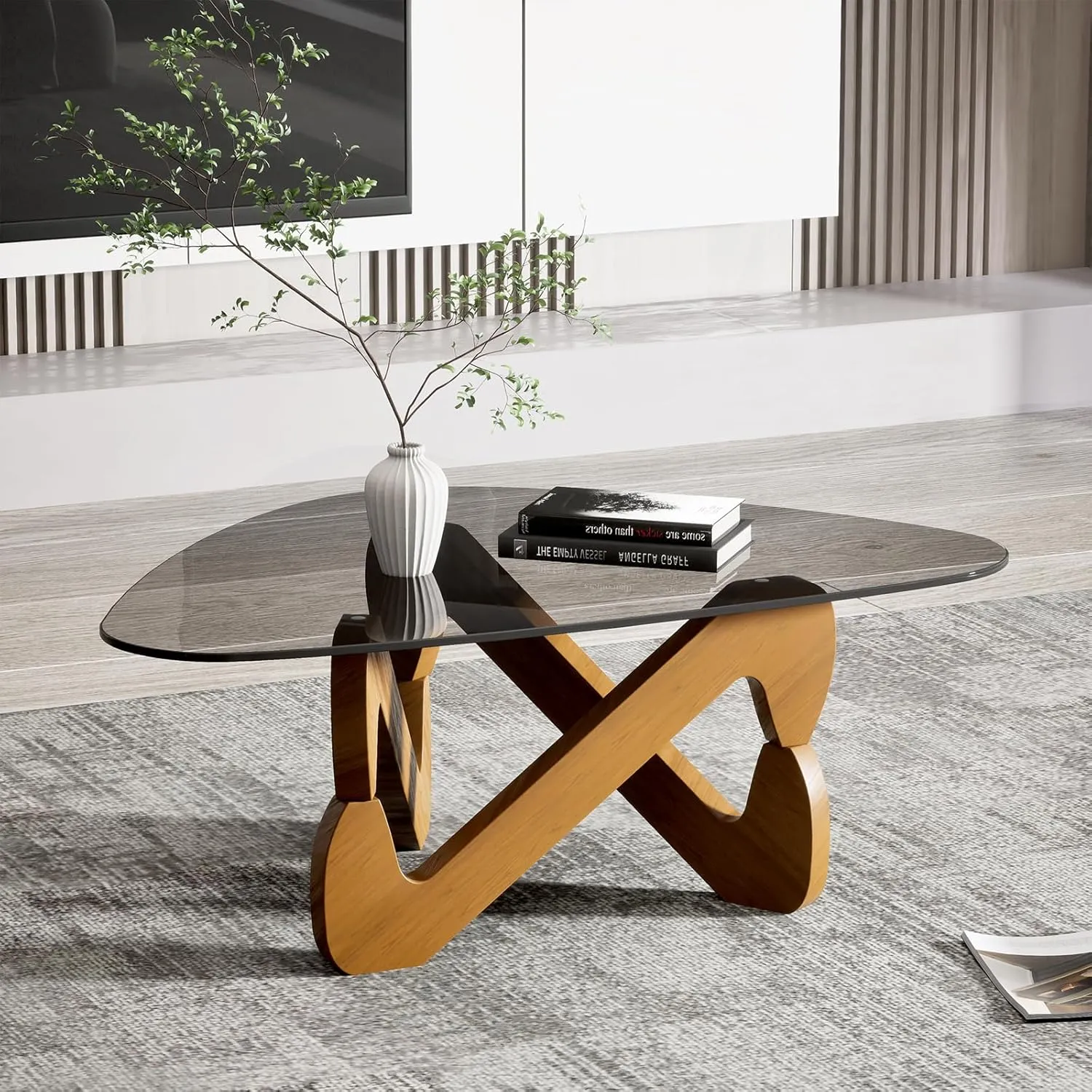 Cette table basse en verre présente une structure triangulaire qui optimise l'espace au sol. Le support assure la stabilité lors de l'utilisation quotidienne. Le plateau est en verre trempé, connu pour sa résistance aux rayures et sa facilité de nettoyage. Elle allie un plateau en verre et une structure en bois, offrant une esthétique moderne. Les pieds en bois contribuent à la stabilité. Facile à assembler et à entretenir, la table peut être nettoyée avec un chiffon humide. Adaptée comme table d'appoint ou table de cocktail, elle trouve sa place dans divers intérieurs.